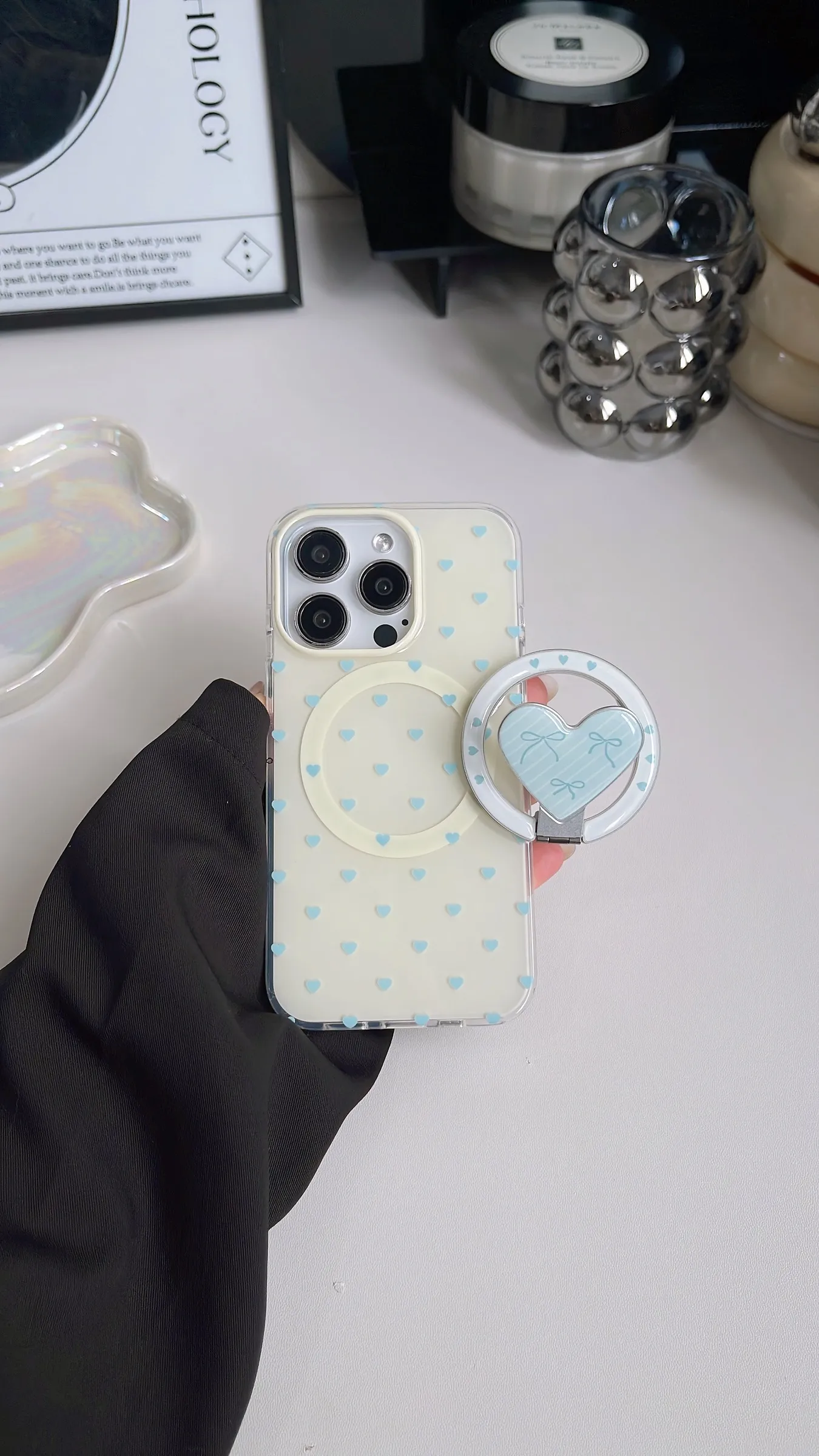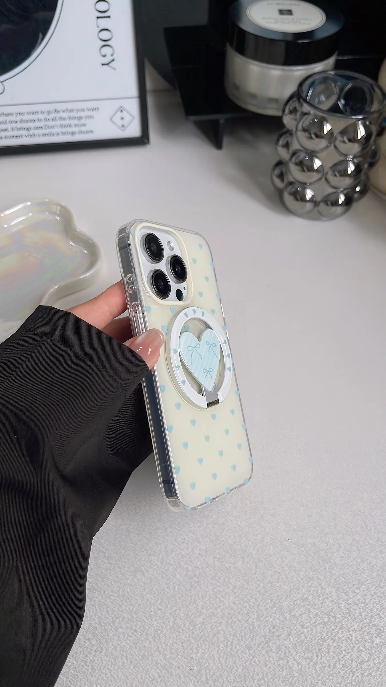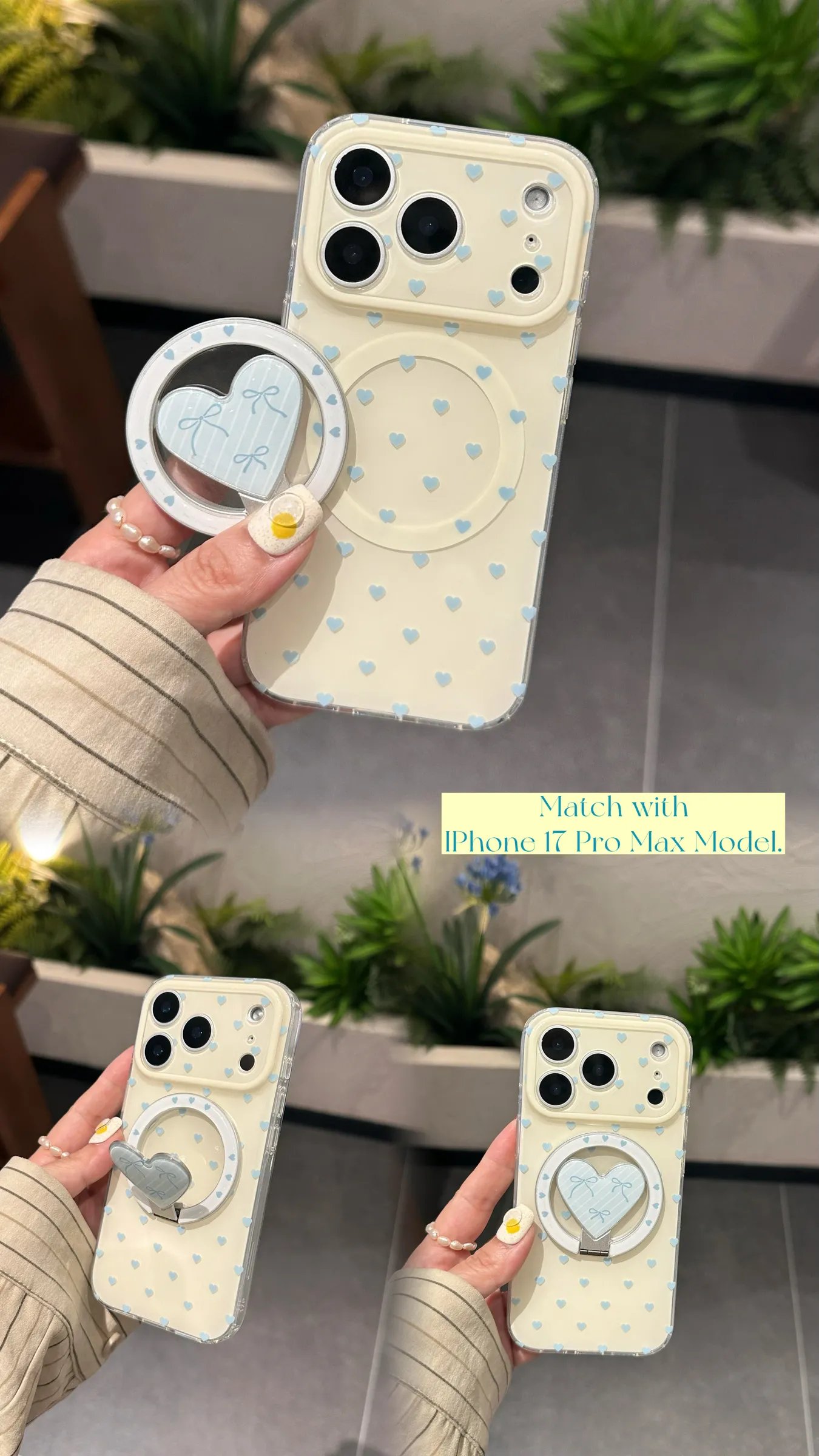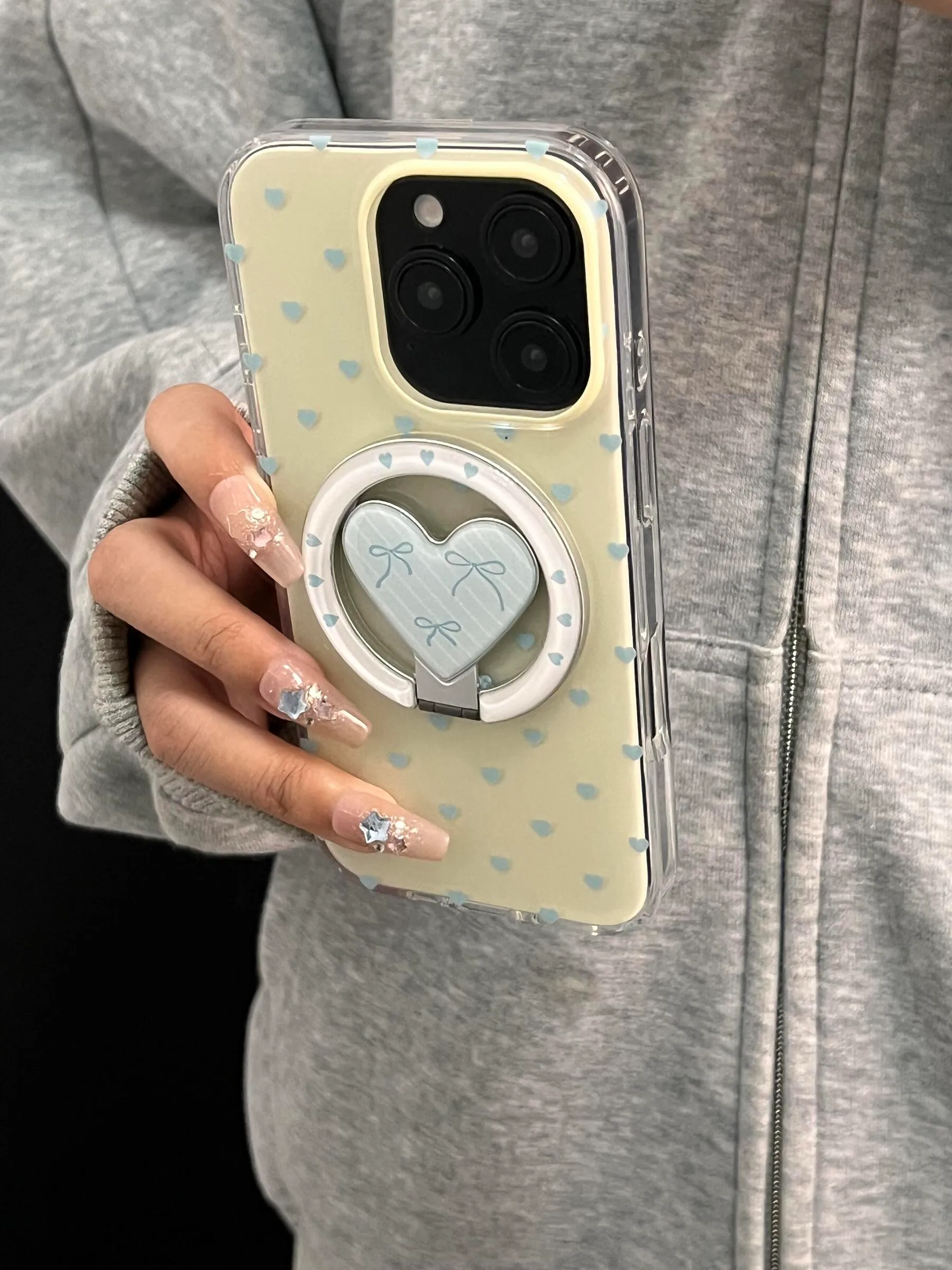 奶油黃搭配了藍色愛心點點設計,整體清新不甜膩,視覺乾淨耐看。